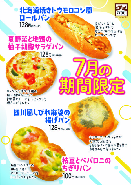 ブゥランジェリィ・アペは愛媛県を中心とする中四国地方で、毎日利用していただけるパン屋さんを目指しています。
