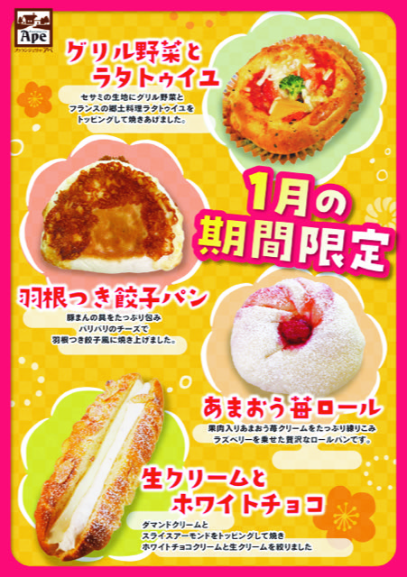 苺の甘酸っぱさとやさしい甘みが広がる、季節限定のスイーツパンです。